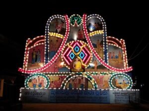 Each year, the Vesak Thoran features a different Jathaka story, artistically illustrated through illuminated structures, carefully crafted to reflect Buddhist teachings of compassion, sacrifice, and wisdom. These displays are not only visual spectacles but also carry deep moral messages, offering the community a chance to reflect on the life and teachings of the Buddha.